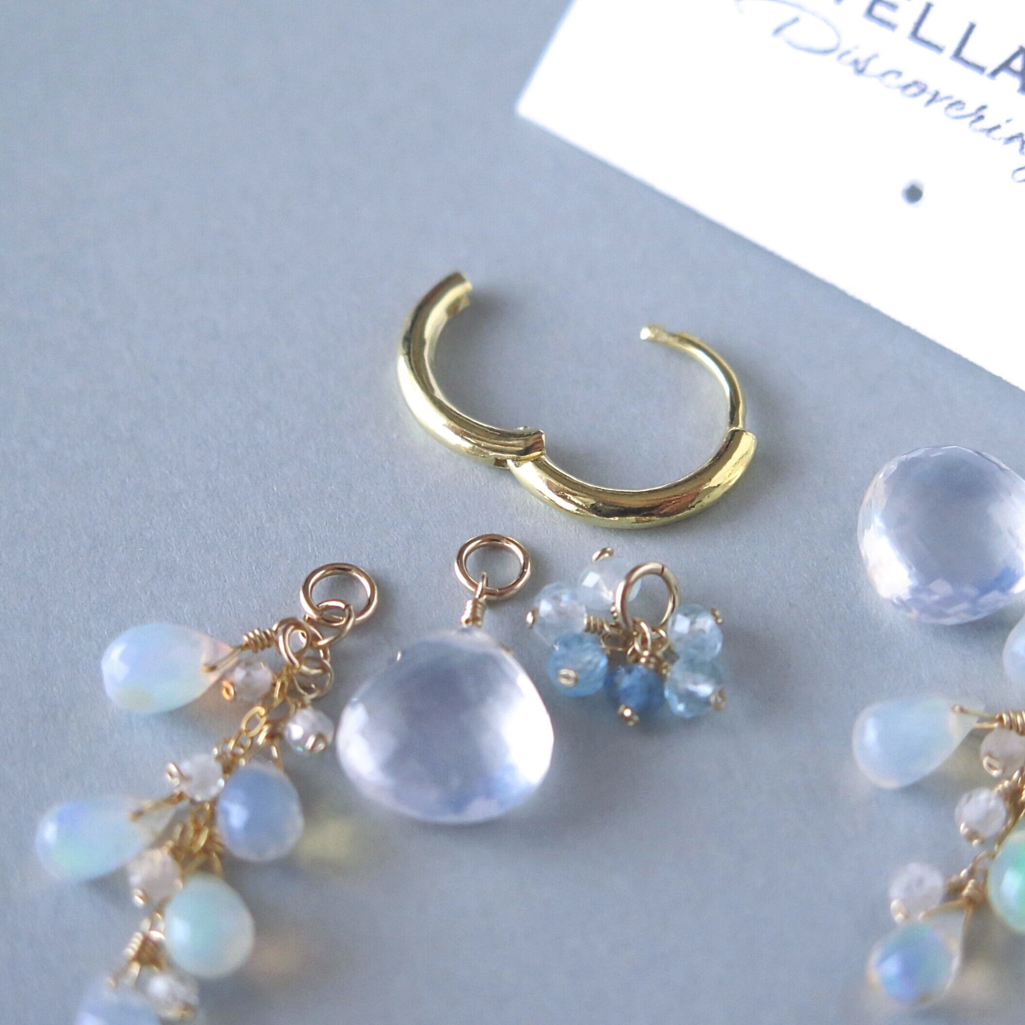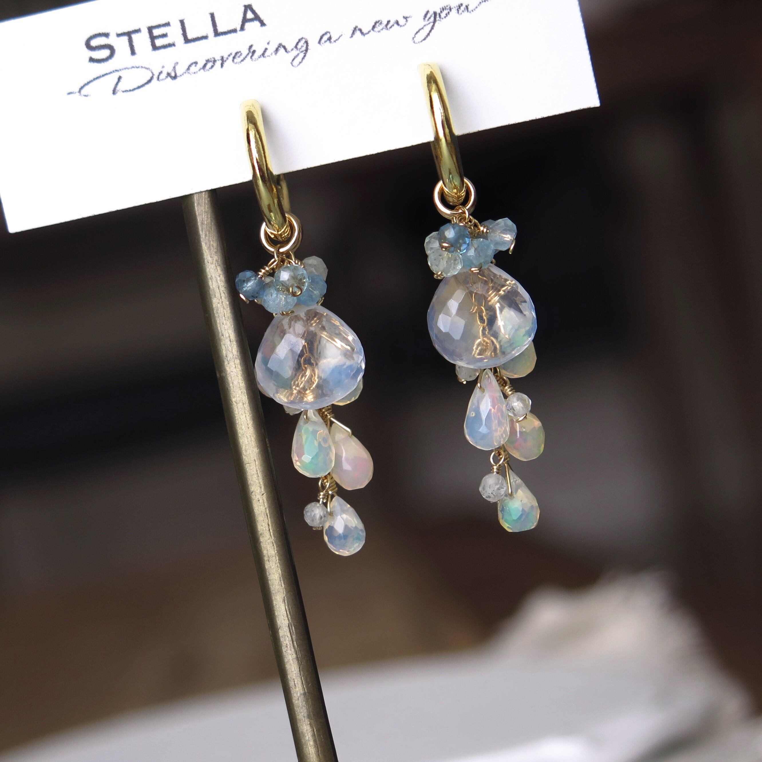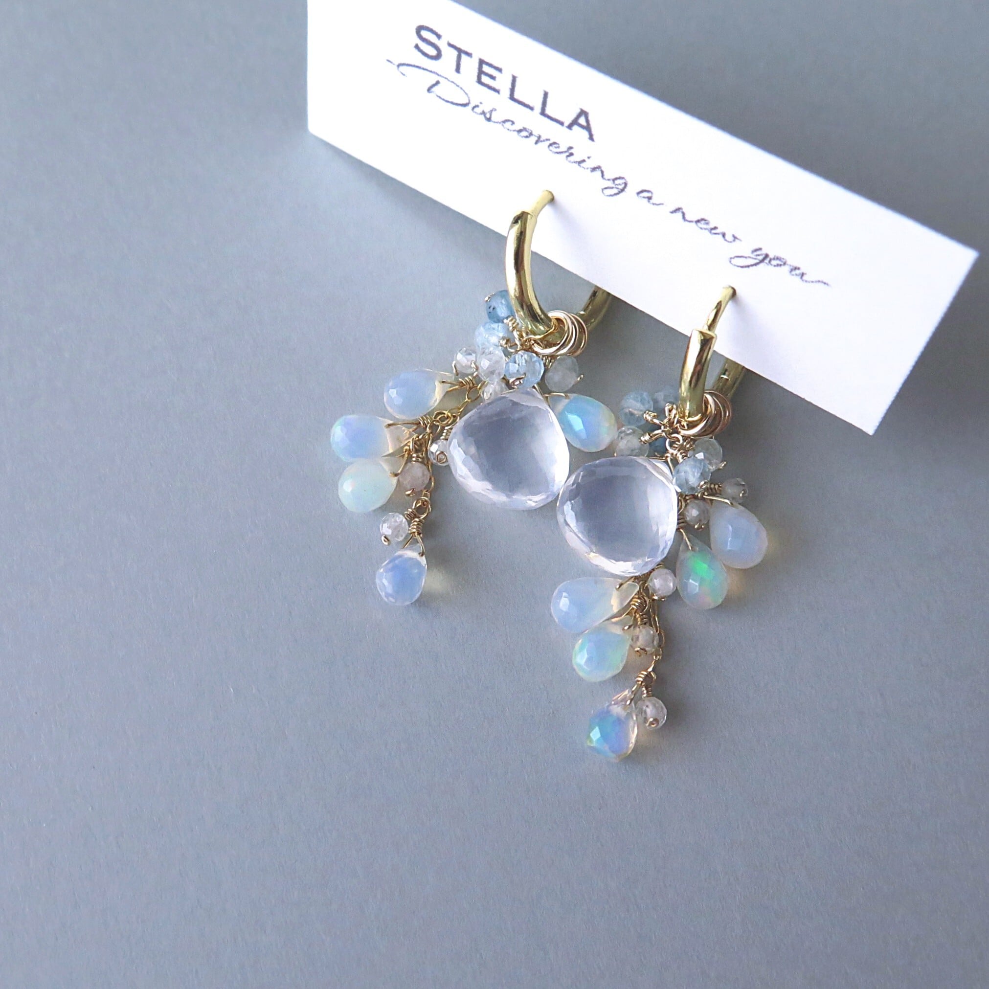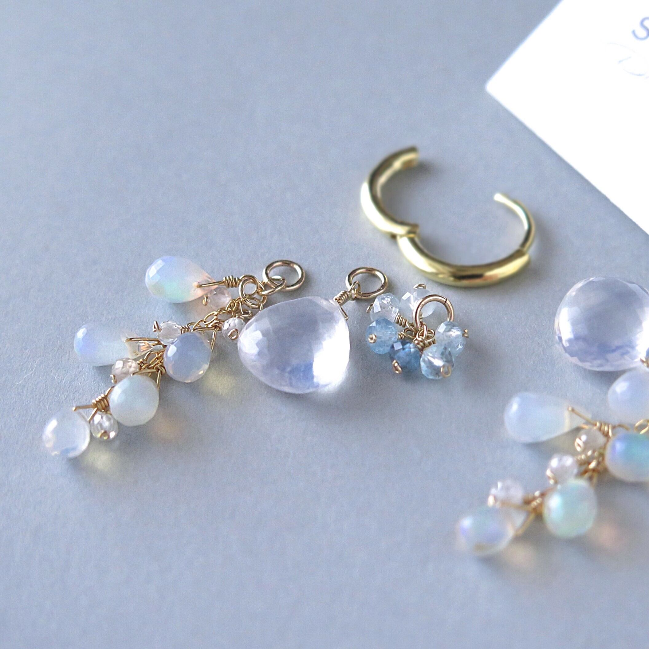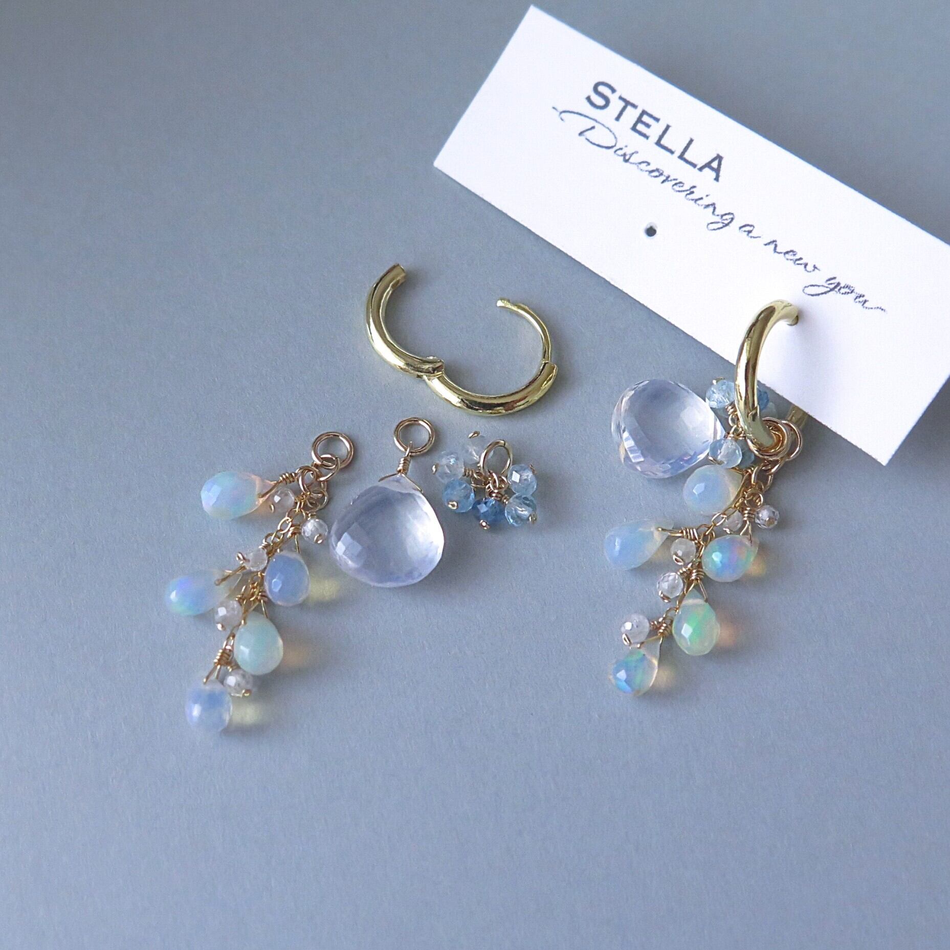 上質アイスクオーツ×オパール×アクアマリン*付け替えフープピアス