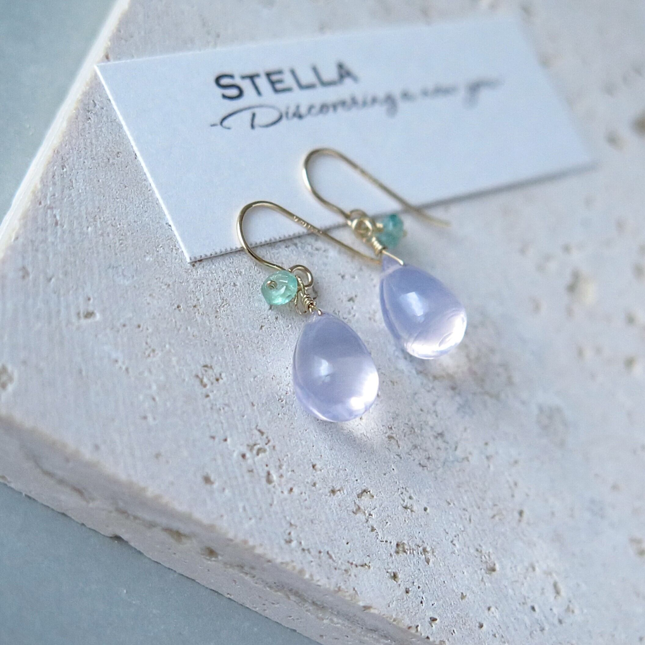 【再販】【K18,K10もOK】うるみ【スコロライト×エメラルド】ピアス(イヤリング)