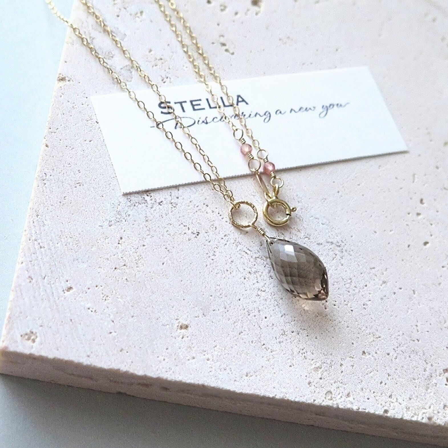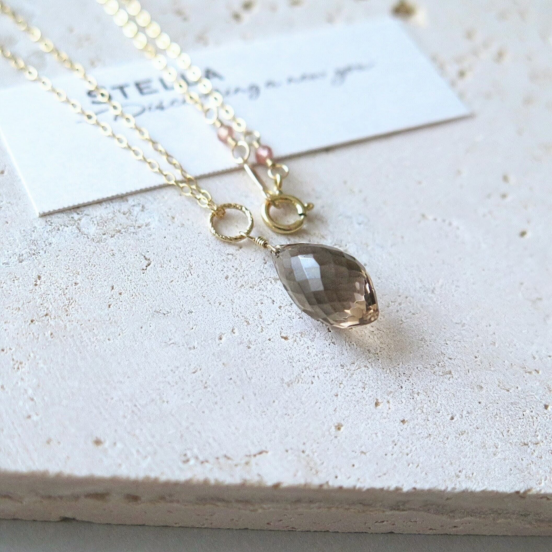 【再販】極上カット【スモーキークォーツ】シャンデリアカット一粒ピアス&ネックレス2点セット