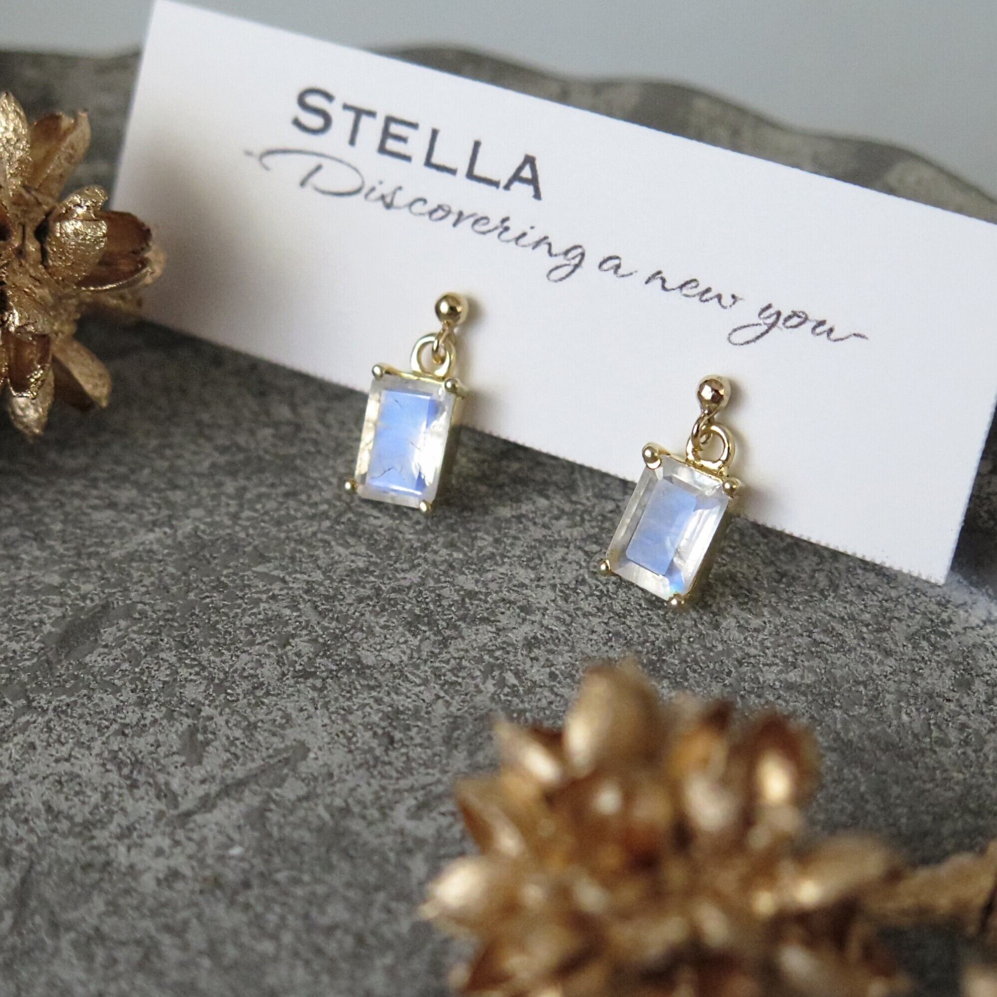 華奢に清楚に冬を纏う*枠留めホワイトラブラドライト*レクタングル*ミニマムピアス(イヤリング)