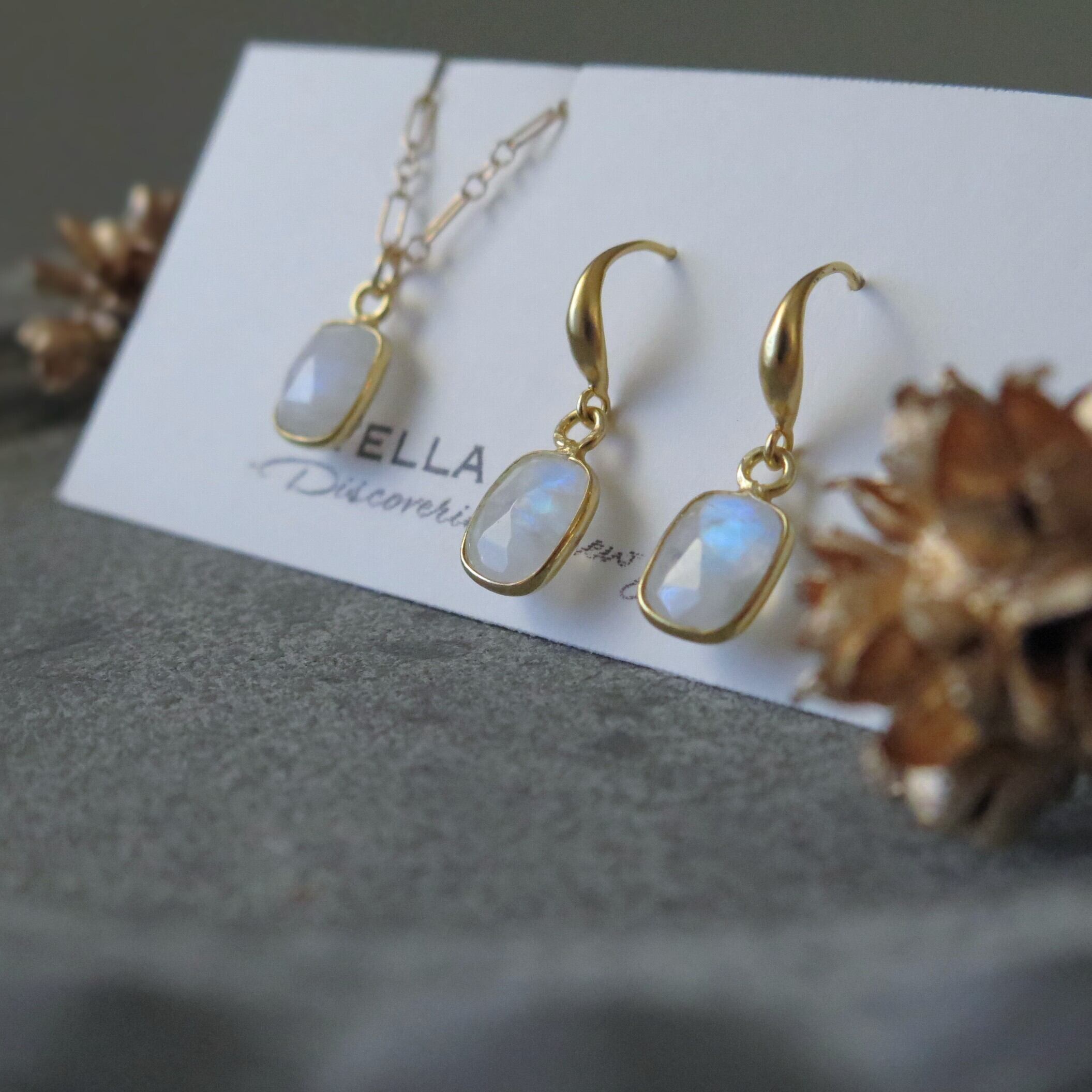 【クリスマススペシャルアイテム】枠留めホワイトラブラドライト*オフレクタングル*ピアス(イヤリング)&ネックレス