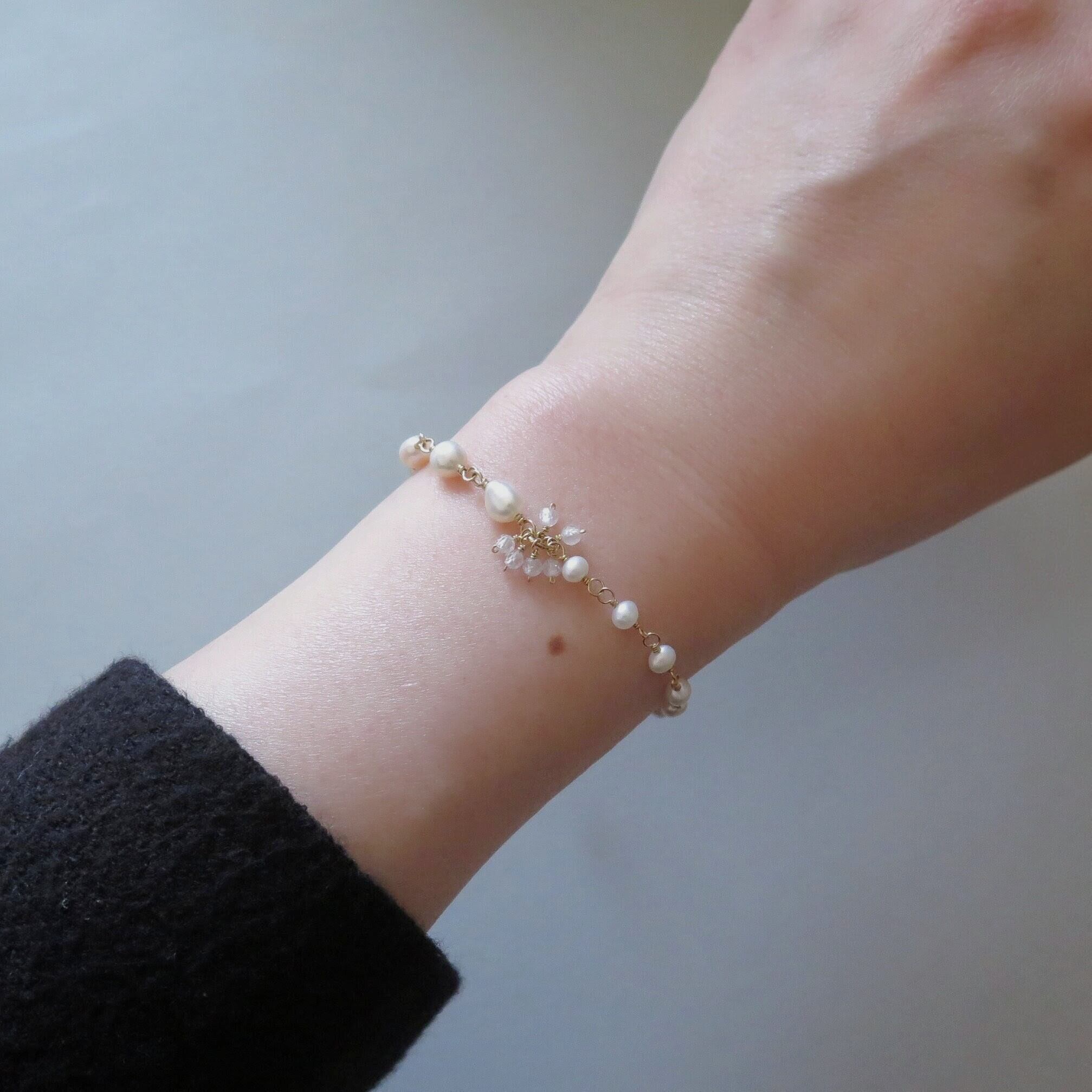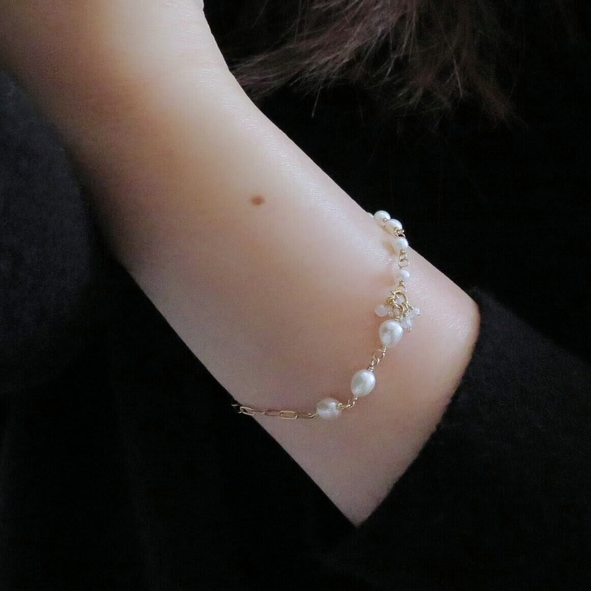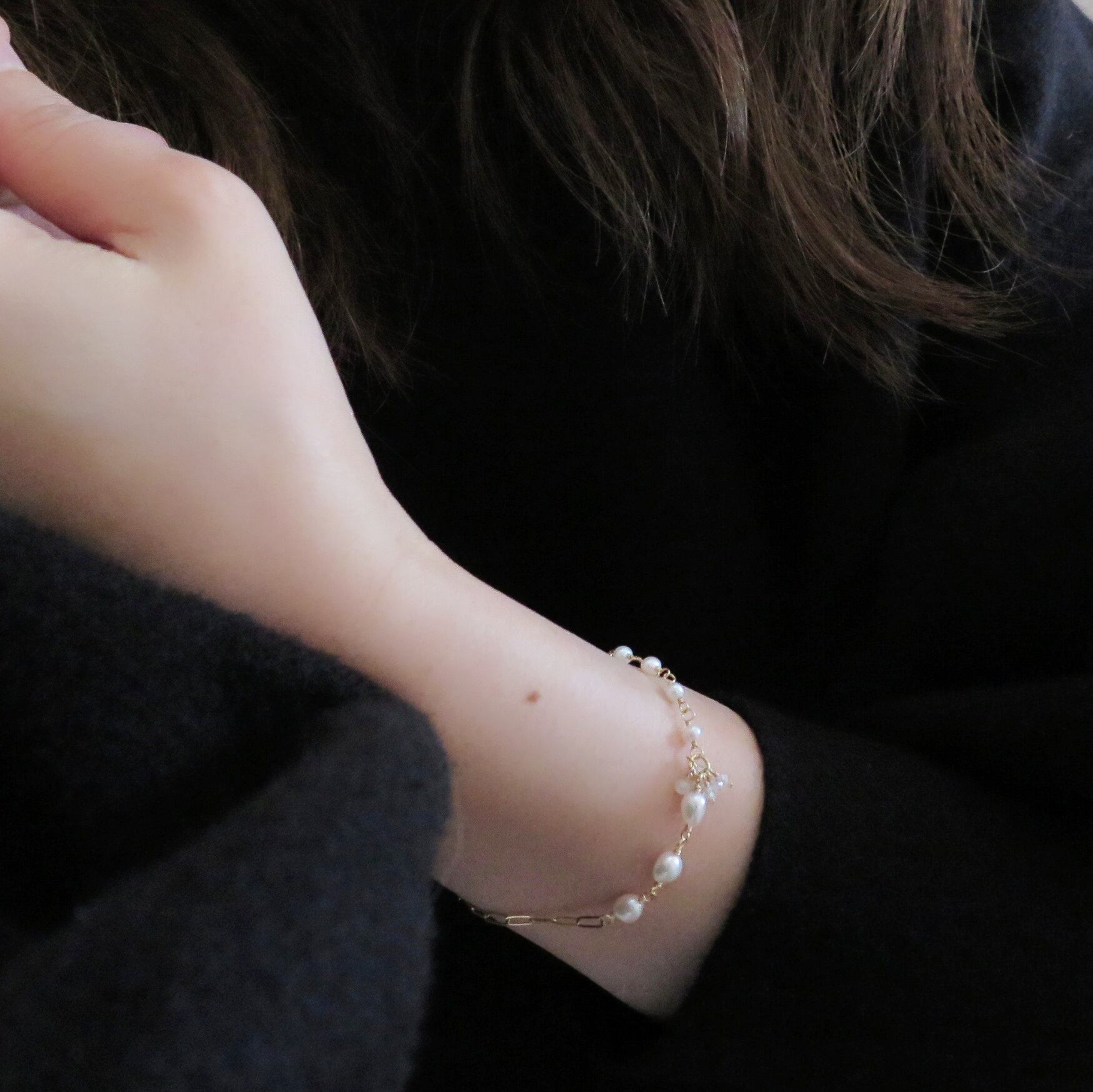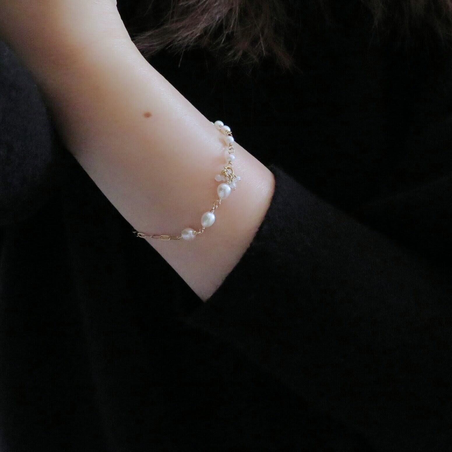 2種のパール×ペーパークリップチェーンの上品なデザインブレスレット