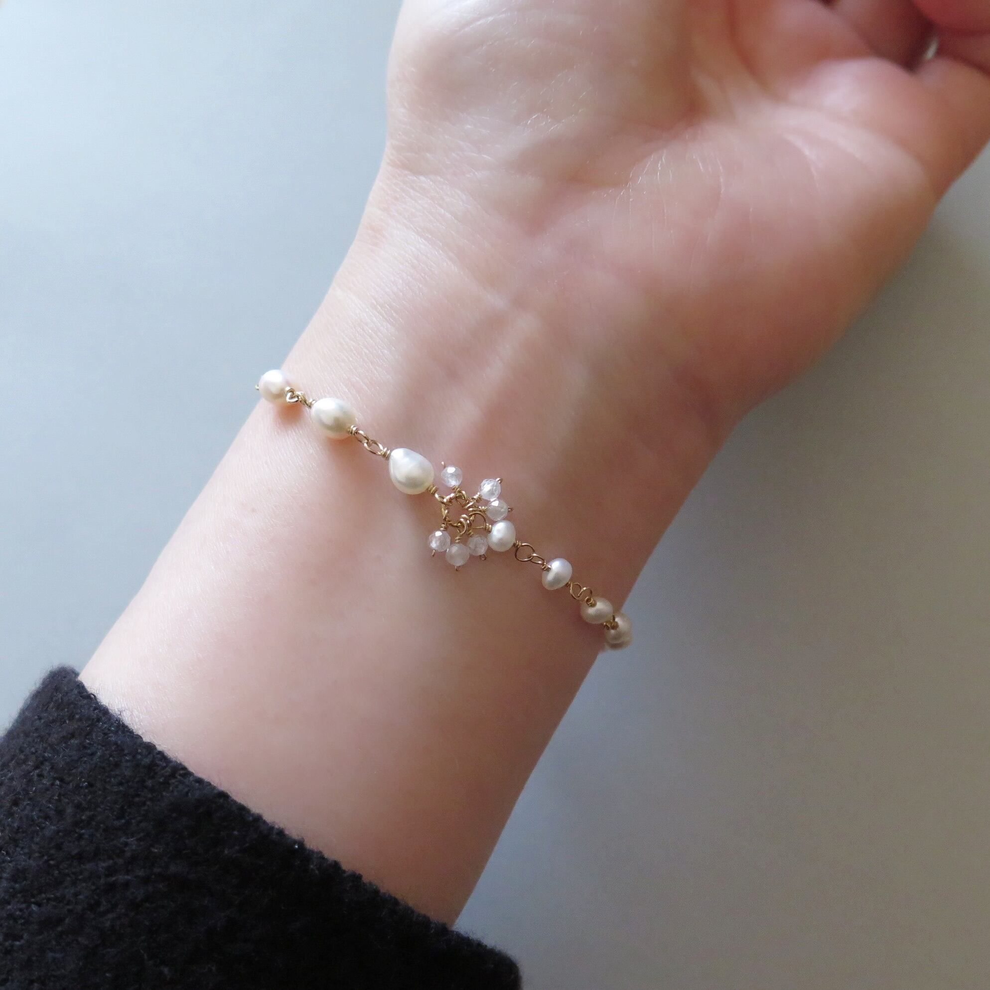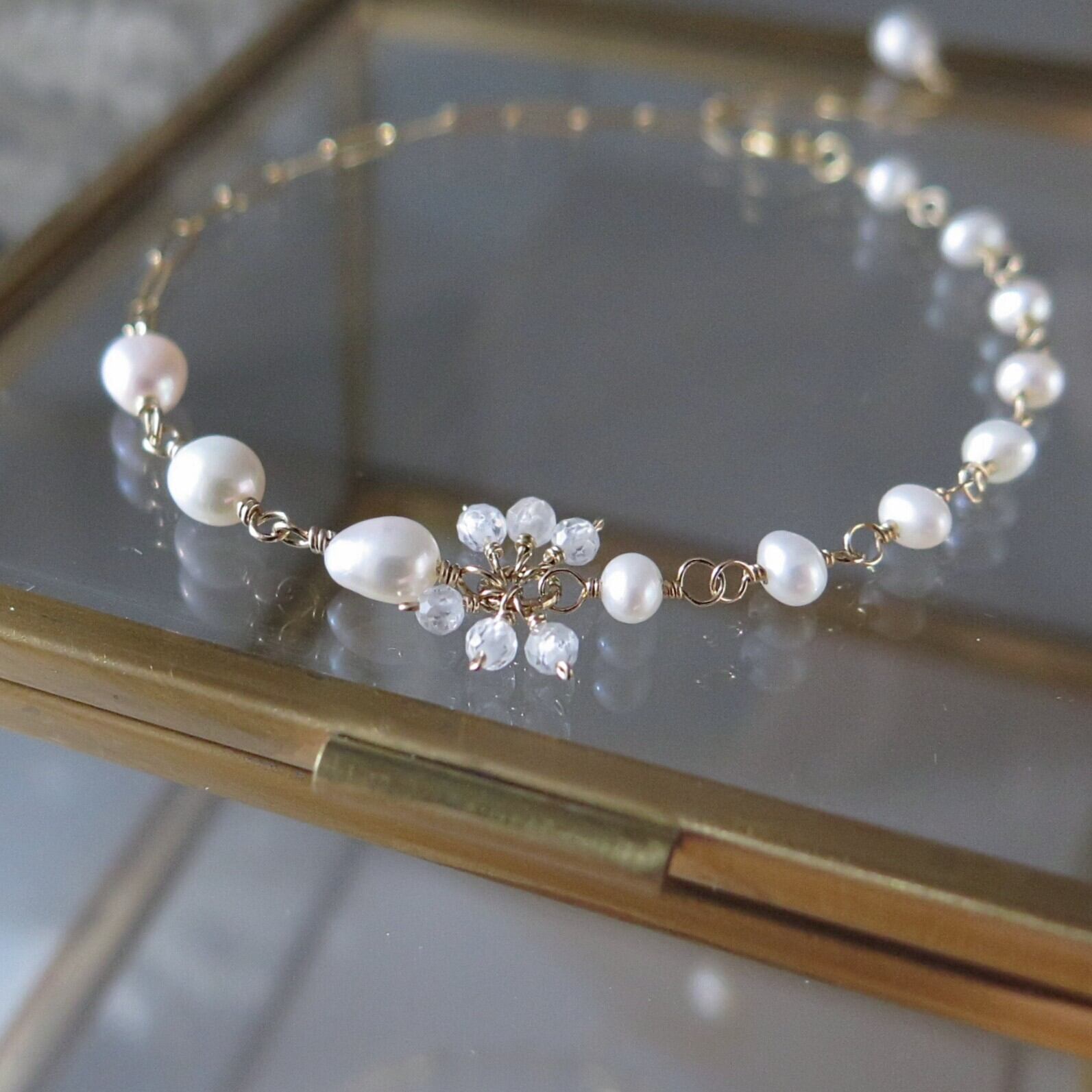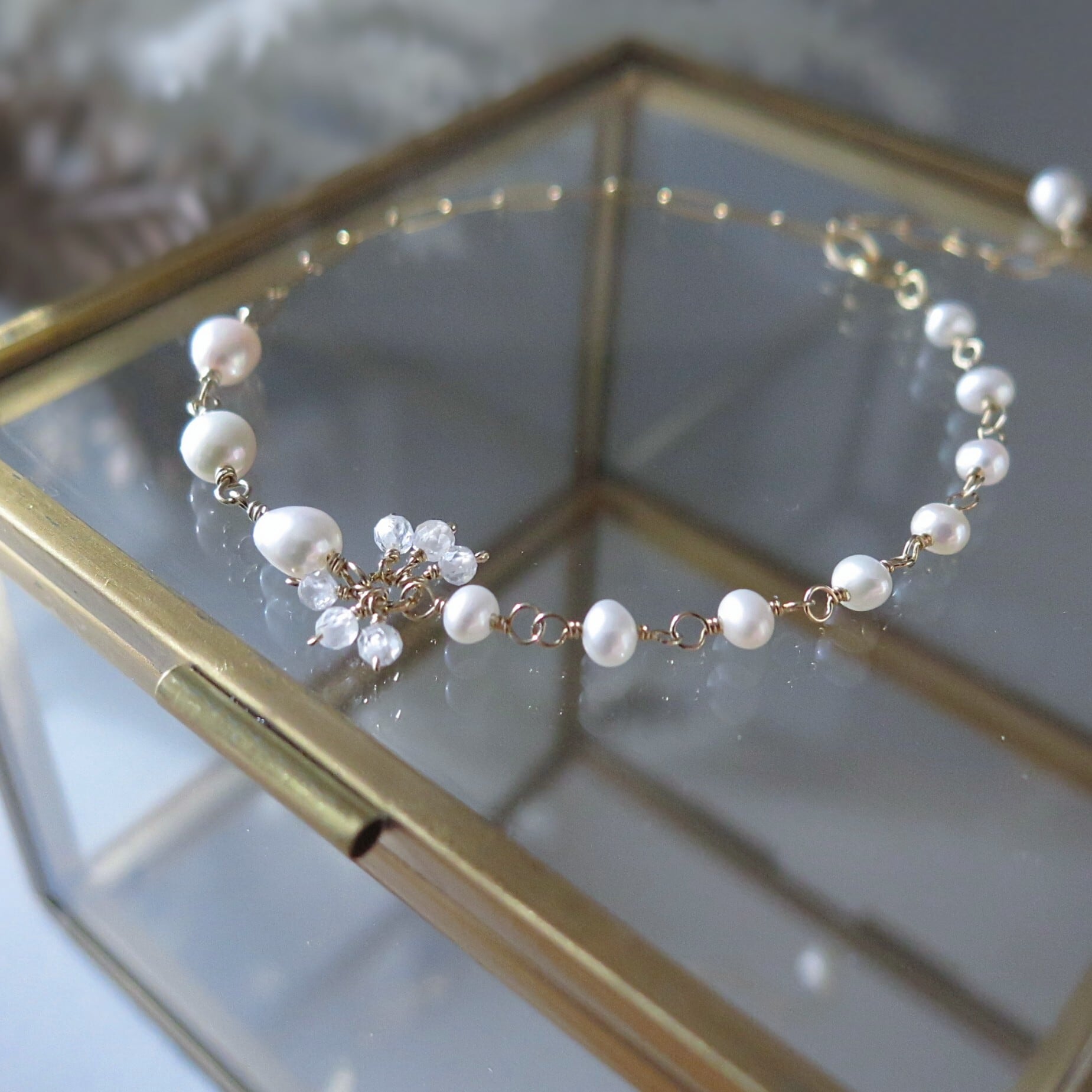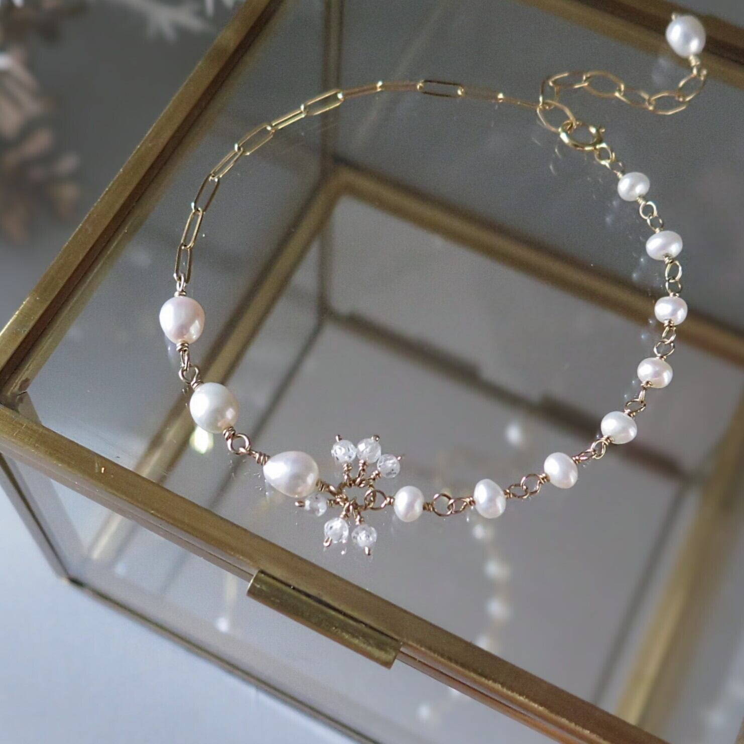 2種のパール×ペーパークリップチェーンの上品なデザインブレスレット