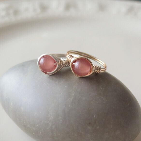 【インカローズ】愛の石*ワイヤーラップ*シンプル*プチ*ワイヤーリング