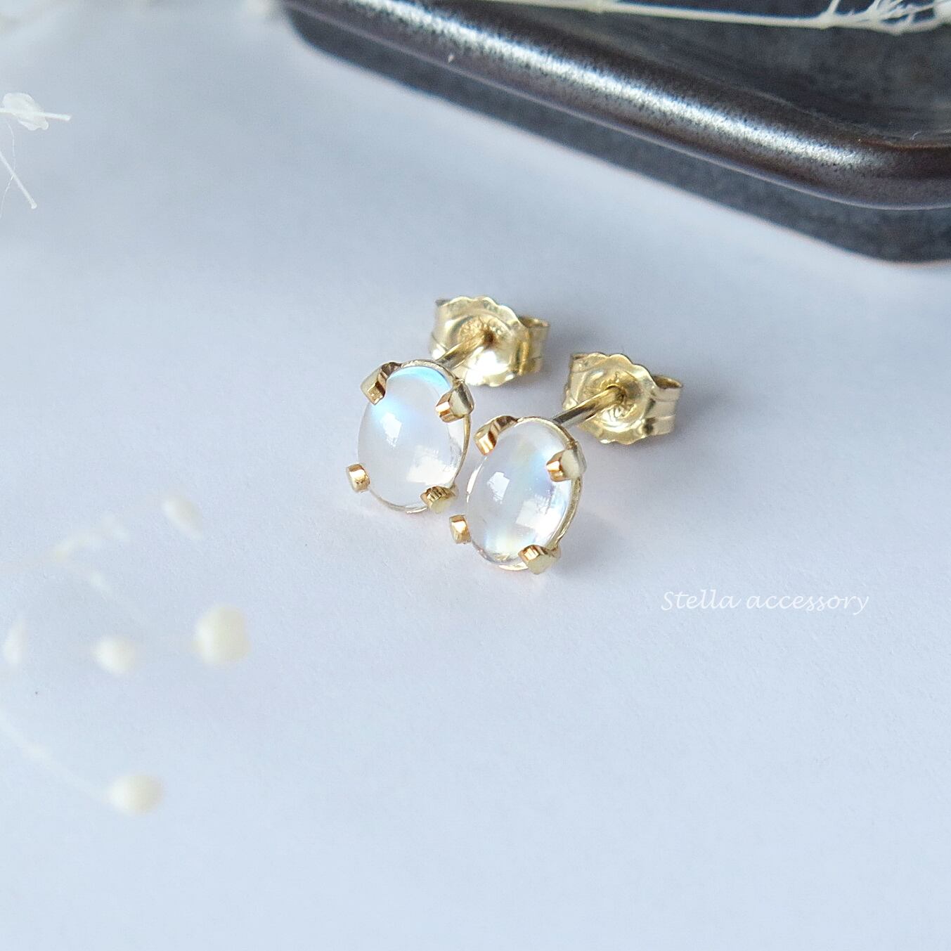 【上質レインボームーンストーン】tiny オーバル*スタッド*一粒ピアス