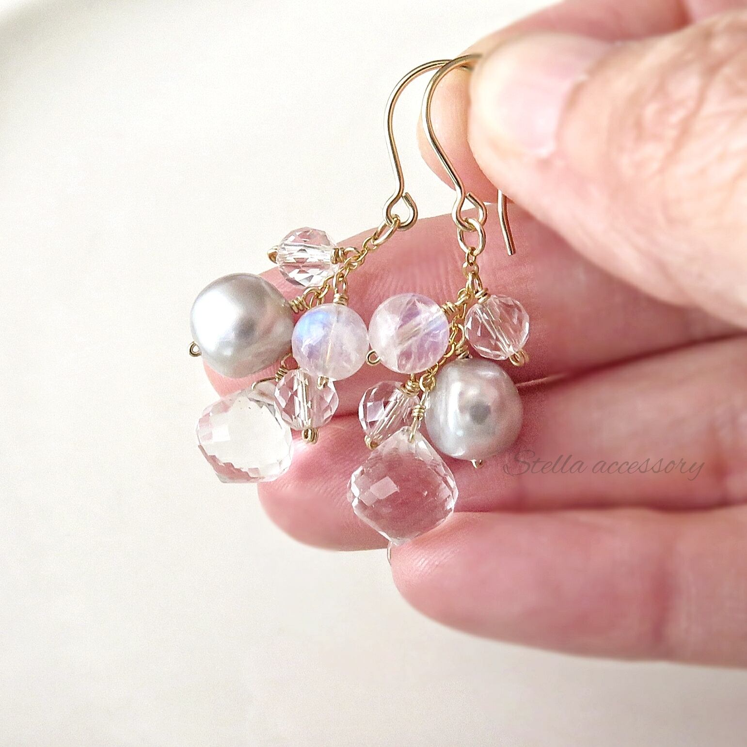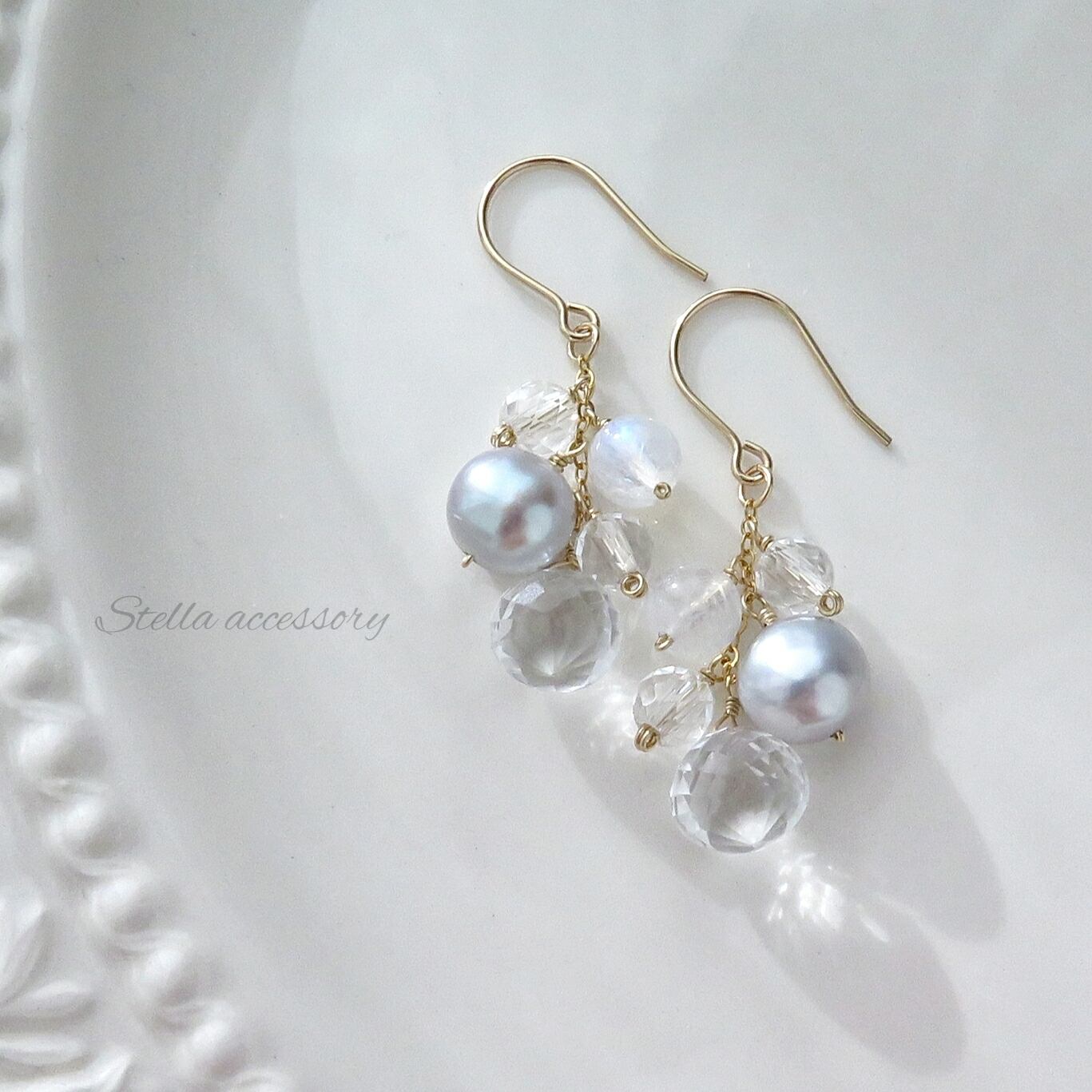 水晶、バロック淡水パール、ハイドロクォーツ