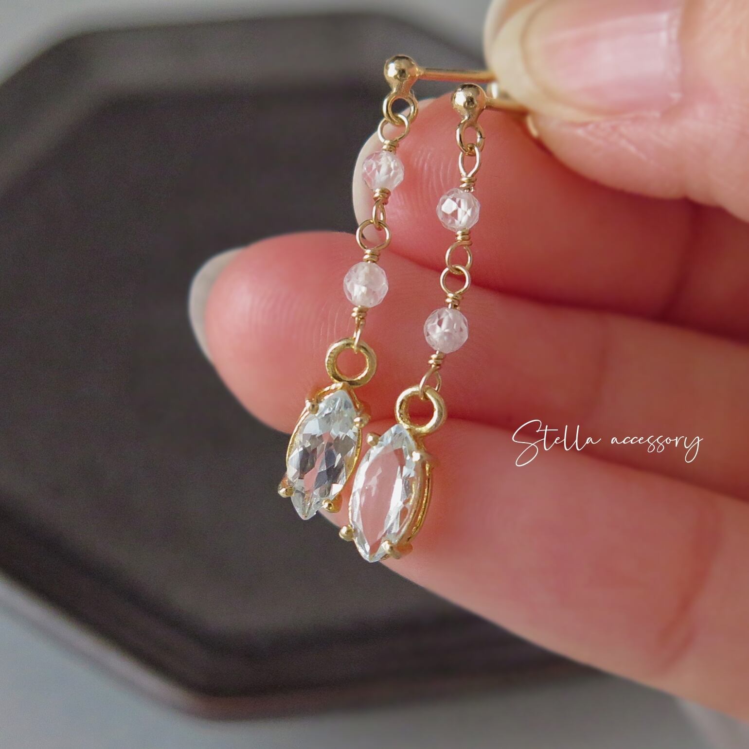 3月お誕生石【アクアマリン】マーキス*ショートピアス