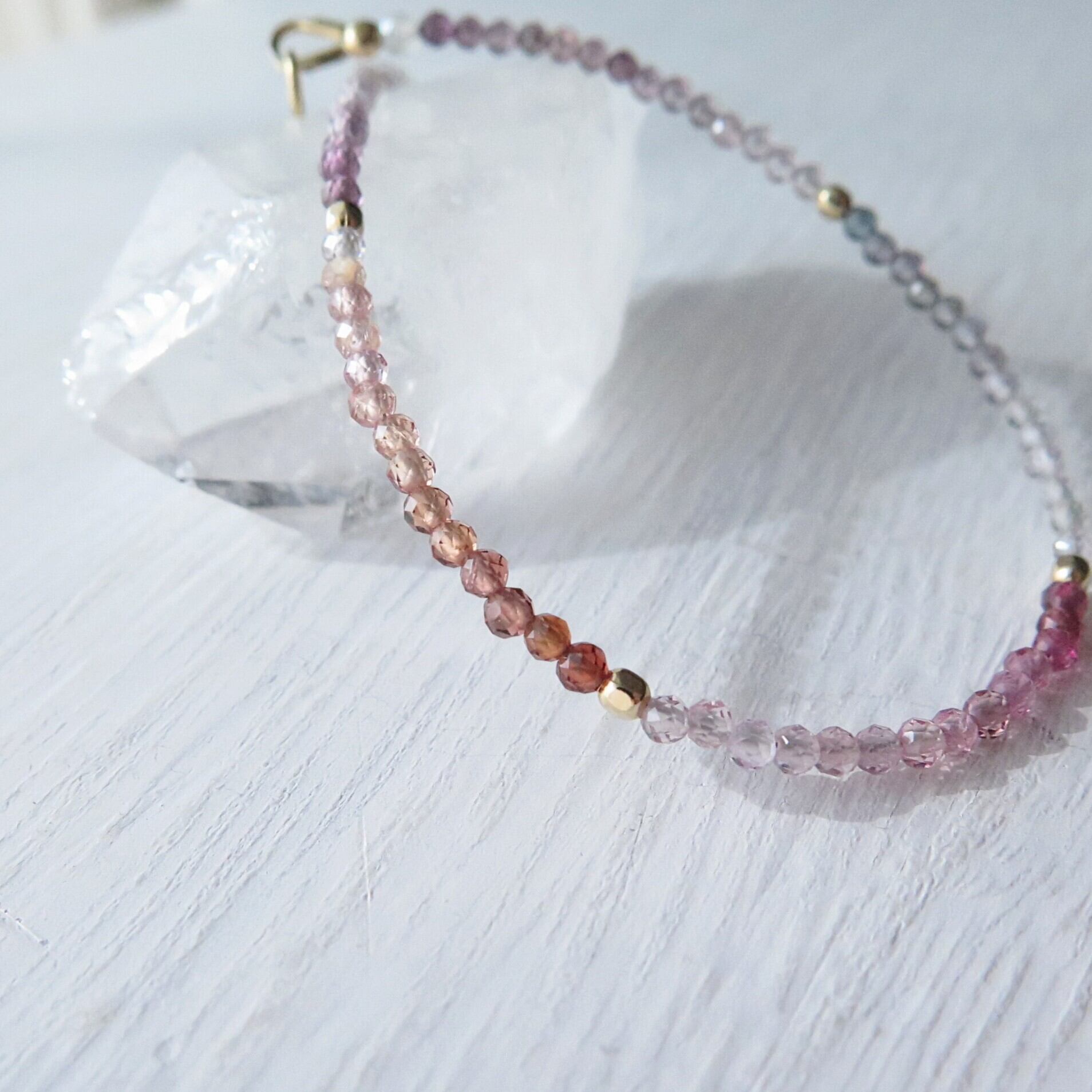 小さな小さなスピネルたちを色合いを選びながら丁寧に連ねたブレスレット。