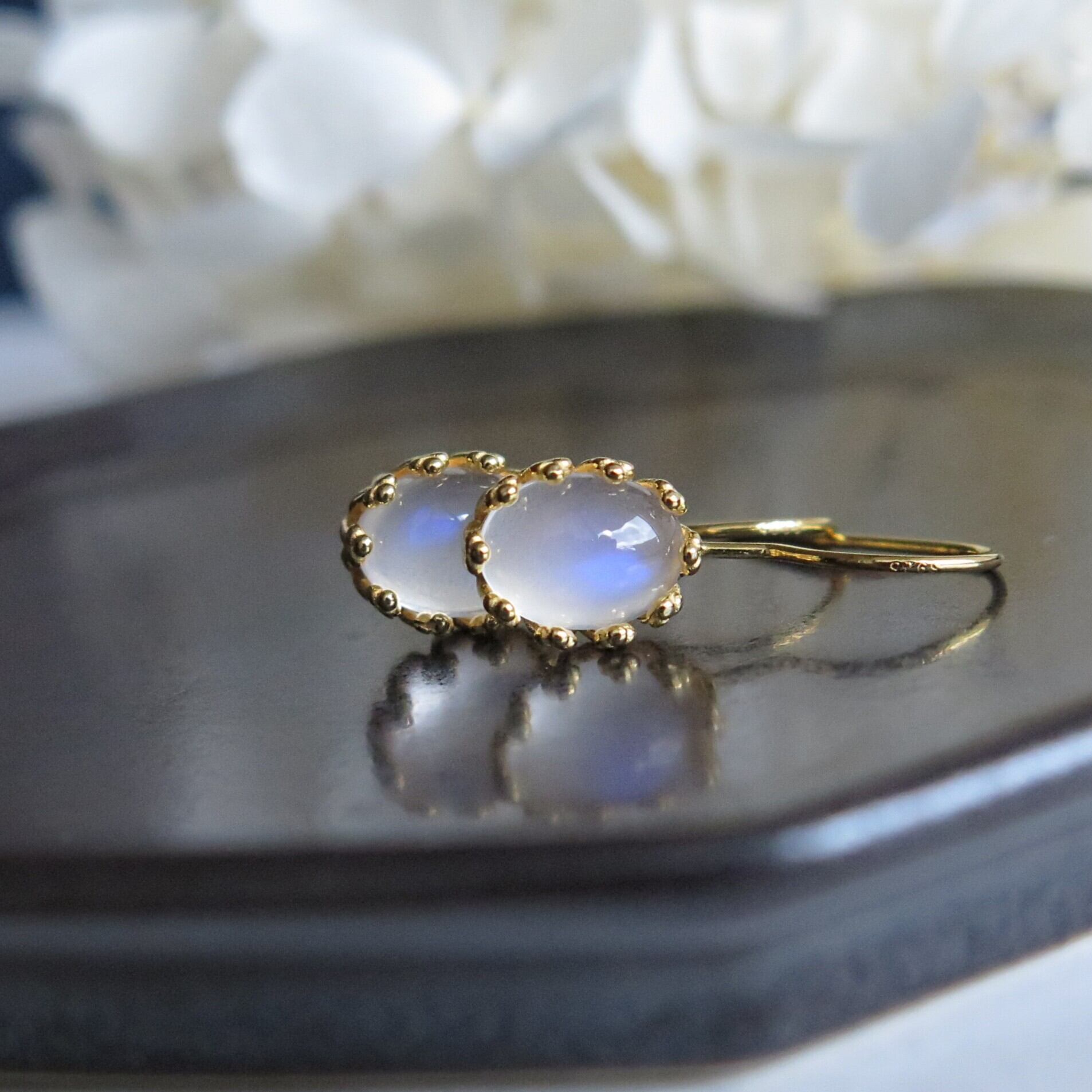 魅惑の表情を湛えたロイヤルブルームーンストーンのピアスです。
